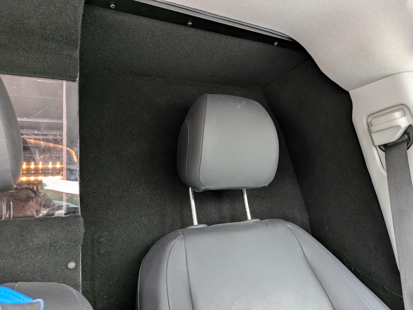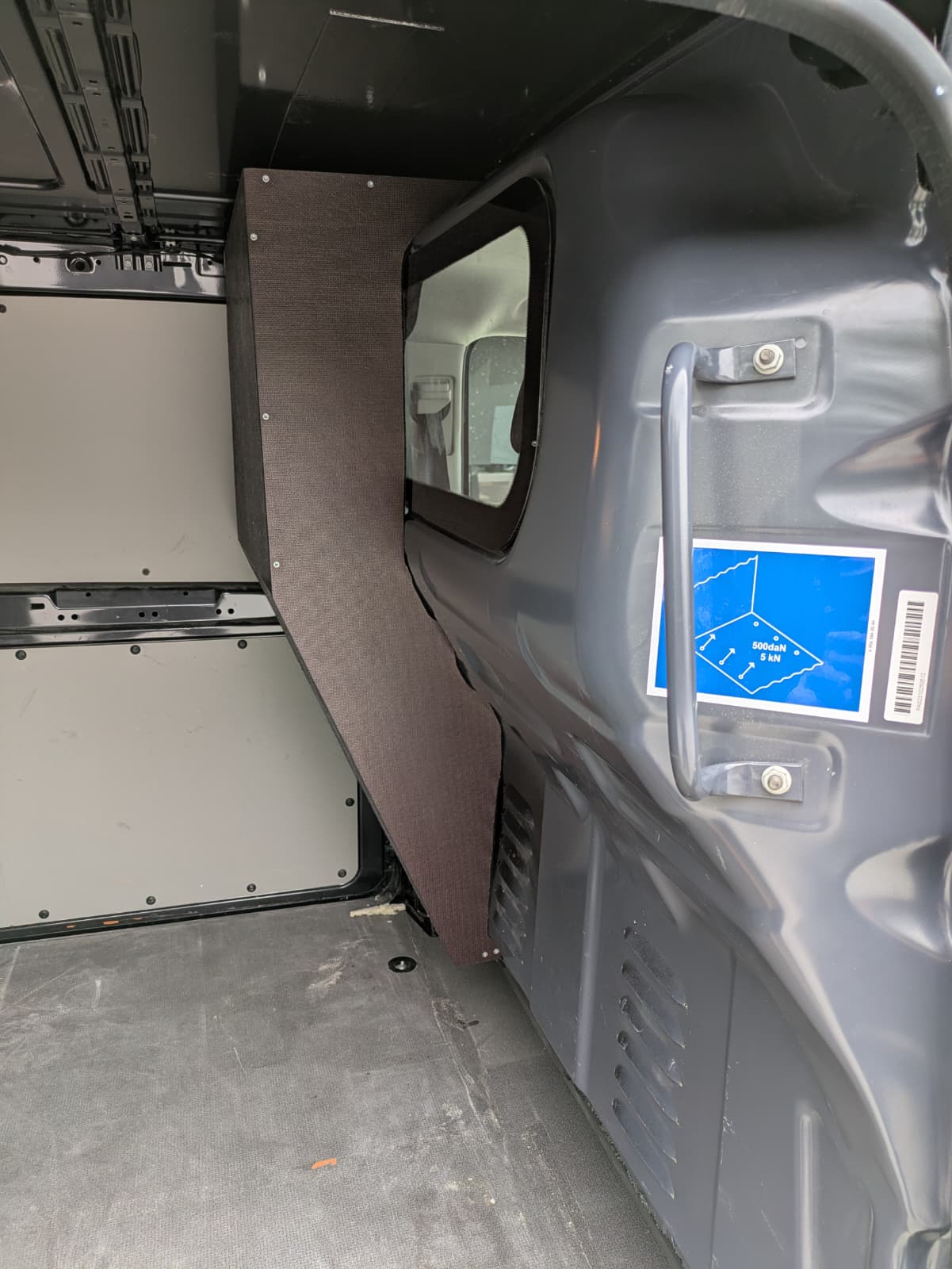 Ce Vito a été personnalisé de manière à ce que la paroi du côté du conducteur soit élargie. Cette opération est généralement réalisée lorsque le conducteur souhaite disposer de plus d’espace pour ses jambes.
